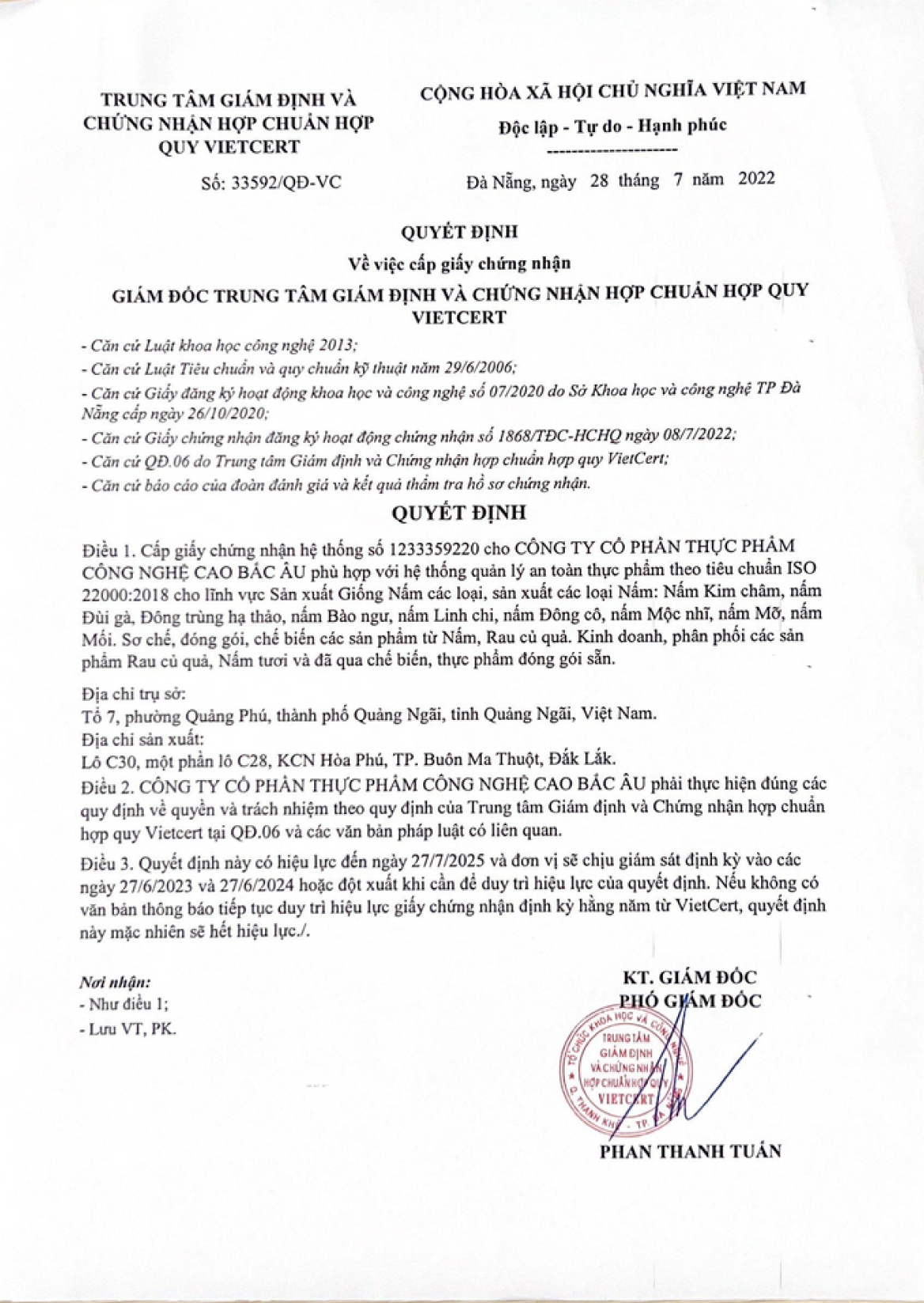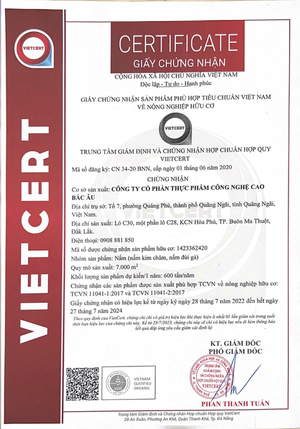 CÔNG TY CỔ PHẦN THỰC PHẨM CÔNG NGHỆ CAO BẮC ÂU - NẤM HỮU CƠ BẮC ÂU